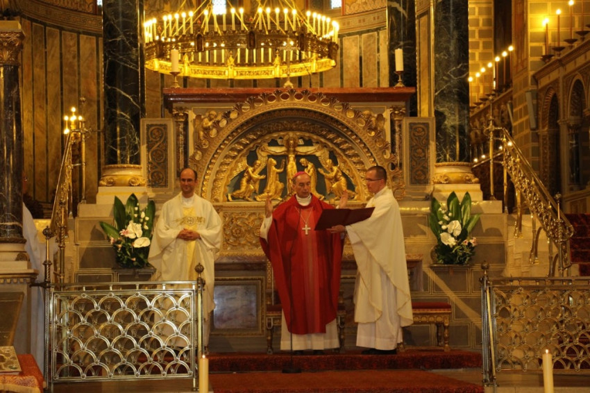 „Nagy alázattal szeretnénk a misztériumra tekinteni, hogy bensőnkben szabad, önálló és felelősséget vállaló emberekké váljunk. Isten szent Lelke vezet el bennünket a szeretetben való növekedésre” – fogalmazott a főpásztor. Prédikációja végén azt kérte a fiataloktól, hogy ismerjék meg az egyházmegye vallási, kulturális értékeit, és vegyenek részt kulturális, oktatási tevékenységében. Fiatalos lelkülettel, az új meglátás erejével segítsék őt az egyházmegye megújításban, hogy a közös szolgálat mindig lendületes maradhasson.