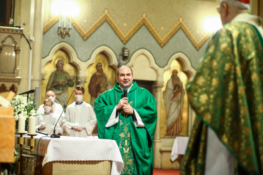 A plébános emlékeztette a jelenlévőket a kezdetekre, amikor a Szabadság téri stúdióban először szólalhatott meg a rádió, amely jó néhány éve már a Lehel téri templom közelében található székhelyéről, a Gogol utcából sugározza műsorait.