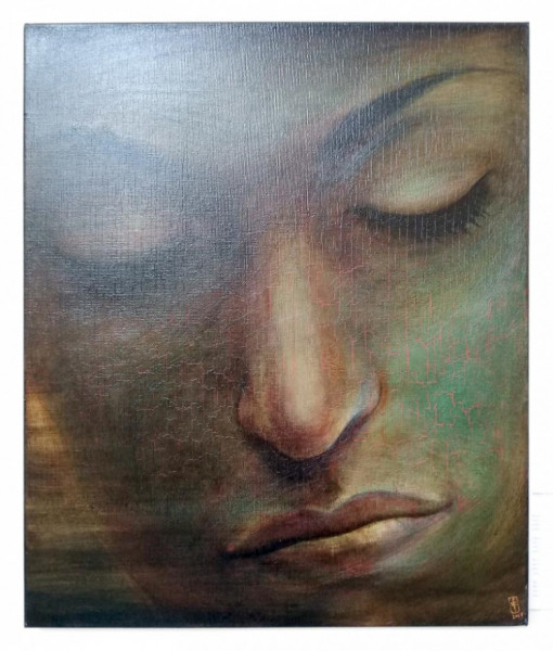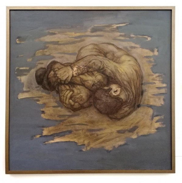 Az elhagyatottság, a magára maradt ember szüntelen vívódásainak lehetünk tanúi ezen a kortárs művészeti kiállításon a Párbeszéd Házában. A kép szén, pasztell, tempera felhasználásával készült farostlemezre. Pilinszky János Késő kegyelem című költeménye volt az ihletője. Egy rövid részlet a versből: „Fogódzanék akárkibe, / de nem lesz soha senkije; / szeméből, mint gazdátlan ág, / kicsüng a pusztuló világ.”