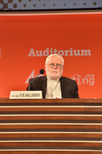A migráció kérdése kapcsán kiemelte, hogy újra fel kell fedezni a kötelességeket, jobban, mint a jogokat. A legnyilvánvalóbb kötelezettség az emberi szolidaritás a szükséghelyzetben, veszélyben lévő emberek iránt. A felebarát segítésének kötelességét egy másik, szintén fontos feladat kell, hogy kiegészítse az államok részéről, az integráció lehetőségének felkínálása a migránsoknak, valamint saját állampolgárai biztonságának biztosítása. Ebben az értelemben hangsúlyozza a Szentatya a személyes törődést: nem szabad az egyik kötelezettséget a másik elé helyezni, szükség van az óvatosság erényére, ami a kormányzás része. Egy nép, amely nem képes integrálni, jobb, ha nem fogad be senkit. Nem szabad azt gondolni, hogy a migráció kritika és szabályok nélküli folyamat lenne – idézte a Gallagher érsek a pápát. Végül hozzá kell tenni, hogy a migránsoknak is vannak kötelezettségeik, például integrálódni, ami mindig lehetőséget is jelent.