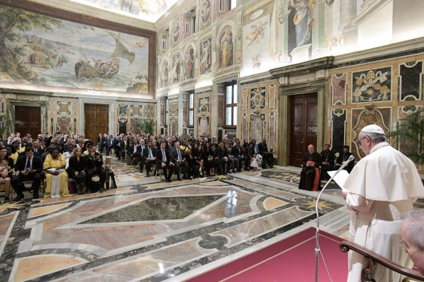 A népek szenvedései közepette arra buzdítalak benneteket, hogy tekintsetek Krisztusra, akinek a szeretete ösztönöz benneteket, hogy a Szentlélek, az adományok cseréje által az igazságra és a közjóra vezessen el titeket. Szakmai munkátokban hordozzátok mindig Jézus örömhírét, hogy senki sem jelentéktelen, senkit sem szabad leselejtezni az élet egyetlen fázisában sem. Mária, az Egyház Anyja közbenjárásra biztatlak benneteket és a nemzeteket, így adom rátok apostoli áldásomat – zárta beszédét a Szentatya, majd megáldotta a találkozó résztvevőit.