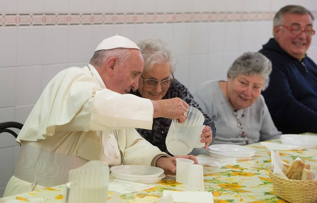 Ebéd közben egy fehér ruhás nővér szépen rendezgette a mozgékonyabb rászorulókat, mire Ferenc pápa megjegyezte: „Ő egy női pápa, lám, nektek is van pápátok!” Azok a szegények, akik most nem tudtak részt venni a pápával közösen elfogyasztott ebéden, levelet írtak Ferenc pápának, és megígérték neki, hogy felkeresik majd a Vatikánban.