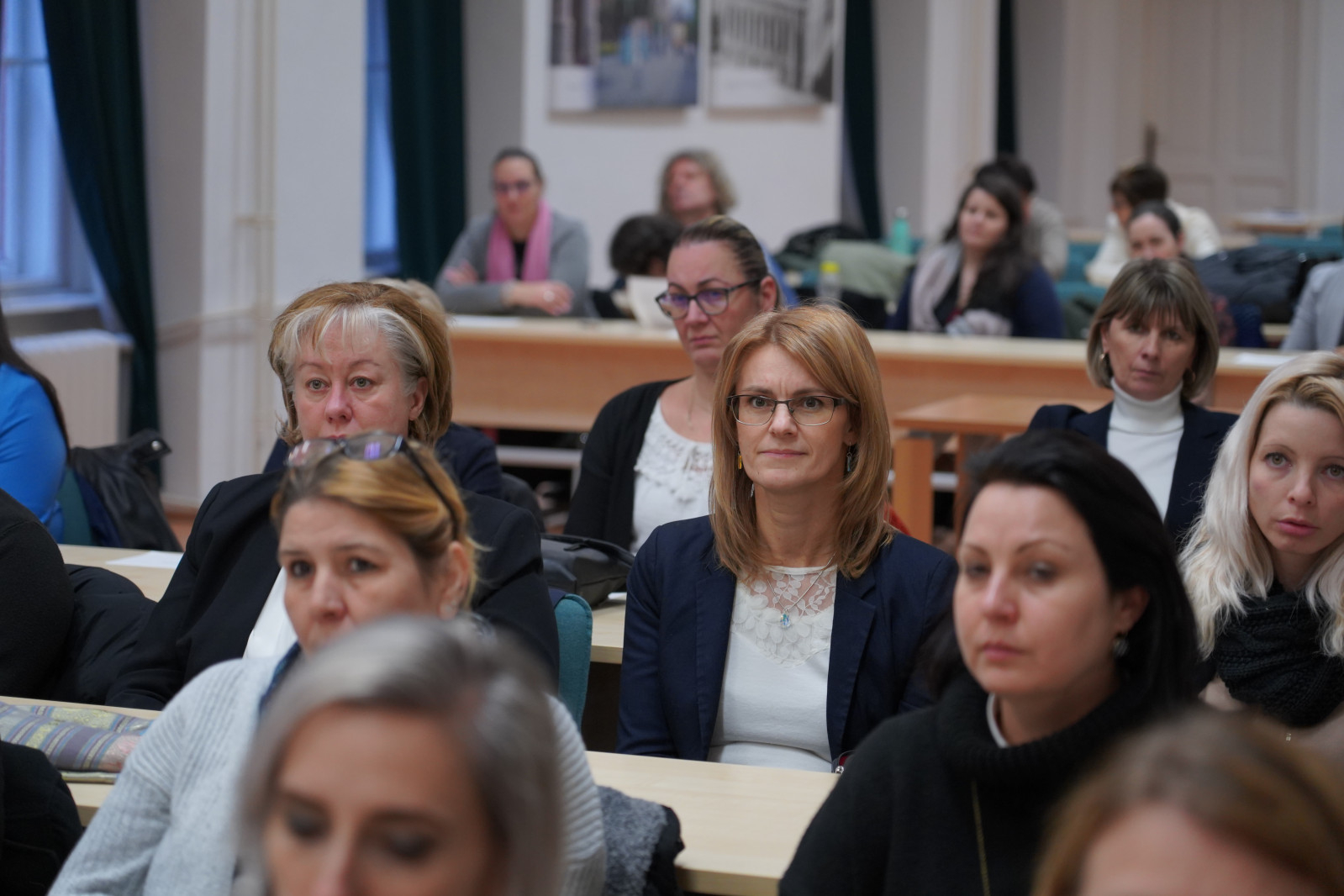 A rektor beszédét Morva Emília, a Magyar Máltai Szeretetszolgálat Közép-Magyarországi Regionális Központja régióvezetőjének előadása követte arról, hogy milyen kihívásokkal szembesülhetnek a női vezetők pályájuk során, s hogy egyáltalán érdemes-e beszélni a „női vezetésről” mint önálló jelenségről. Szó esett arról is, hogy mennyire nehéz összehangolni az anyaságot a vezetői pozícióval, holott valójában egyre nagyobb igény van a női értékek és nézőpontok kibontakoztatására a vezetői szférában.
