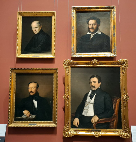 Belépve az első terembe, a képtárba, négy közismert magyar költő és politikus arcképe fogad bennünket: Kölcsey Ferencé, báró Wesselényi Miklósé, Vörösmarty Mihályé és Deák Ferencé. A portrék az 1830-as évek közepén-végén készültek, amelyeket Barabás Miklós, a korszak talán legismertebb és legfoglalkoztatottabb festője készített, leszámítva Kölcseyét, melynek alkotója Anton Einsle, az elismert osztrák udvari festő, aki azokban az években többször járt Magyarországon, és többek között József nádornak is dolgozott.
