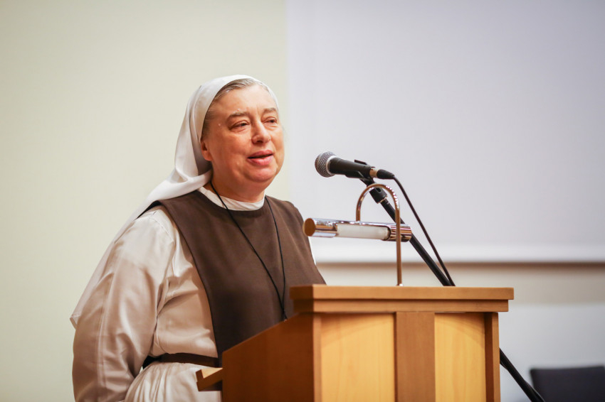 „És én ma is hiszem, hogy benned nincs változás, ugyanaz vagy mindörökké” – szólt az ének refrénje, amely ráhangolta a jelenlévőket Csaba Veronika Mária CB nővérnek a képmástól a hasonlatosságig történő átalakulásról szóló előadására. „Isten az, aki nem változik, viszont mi, emberek állandó változásra vagyunk hivatottak” – kezdte tanítását a szerzetes nővér, majd feltette a mindenkit elgondolkodtató kérdéseket: