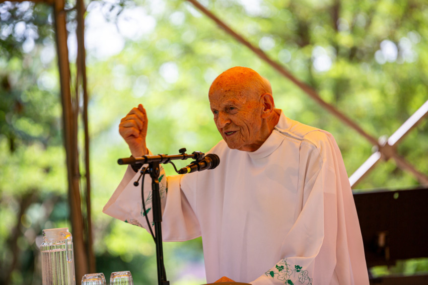 Egerszalók hajója vízre szállt és mély vizeken indul el, a kapitány a helyén van – kezdte tanítását Kerényi Lajos, majd felidézte a kezdeti időket, amikor titokban jöttek össze itt a fiatalok a templomban. A piarista szerzetes úgy fogalmazott, idén Szent Józsefre bízták az együttlétet. Hozzátette: új világra van szükség, mert a Sátán rombolni akar, s küzdeni kell a halál civilizációja ellen – ebben segítenek a találkozó előadásai.