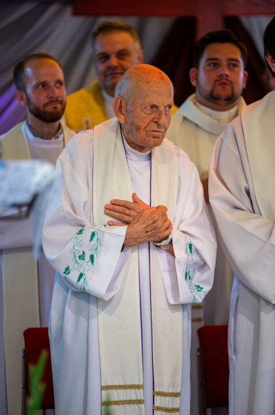 A főpásztor köszöntötte a találkozóra ellátogatott papokat, különös tisztelettel a találkozó egyik megálmodóját, Kerényi Lajos piarista szerzetest, a szolgálatot végző önkénteseket, valamint azokat, akik évről évre visszajárnak a programra és azokat a fiatalokat is, akik nyári szabadidejükben mély lelki feltöltődésre és értékes programra vágyva érkeztek Egerszalókra, „Szalókországba”.