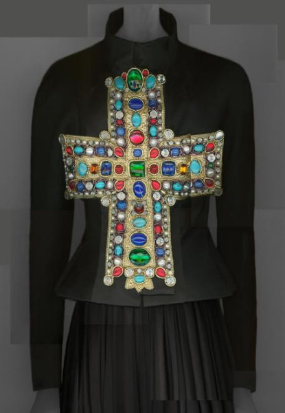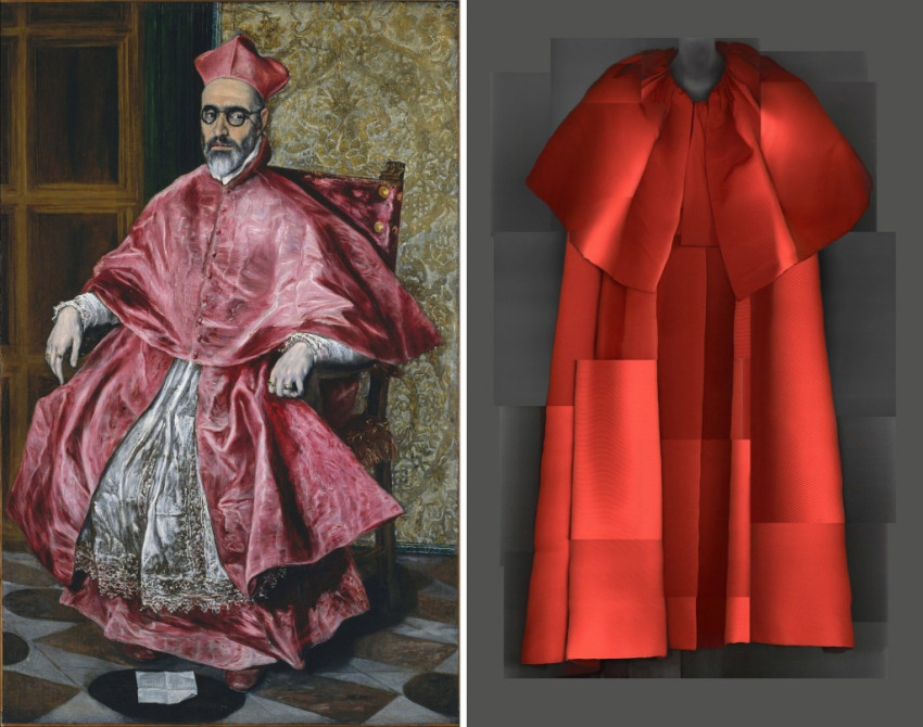 A több mint ötezer négyzetméteres kiállítótérben a Vatikánból kölcsönzött papi és főpapi viseletek mellett a Met saját tárgyai szerepelnek majd, illetve olyan dizájn-ruhadarabok, amelyeket a katolikus ikonográfia vagy stílus inspirált: El Greco bíborosa ihlette pelerin, Chanel menyasszonyi ruha, amelyet egy elsőáldozó-ruha inspirált, vagy estélyik, melyeket Zurbarán festményeinek szerzetesei ihlettek.