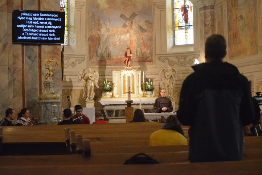 „Segíts, hogy áldani tudjunk, bármi is ér minket, hogy bármilyen élethelyzetben is vagyunk most, áldani tudjunk téged, aki türelmes vagy, szólongatsz, hívogatsz, szeretetet adsz nekünk” – fohászkodott a ferences szerzetes, majd így folytatta: „Van, amikor jól vagyunk, élettel telve, máskor azonban reményvesztetté válhatunk, mint esetleg most, a járvány idején is. Nehéz elviselnünk a bukást, elveszíteni azt, akiben, amiben bíztunk. Sok fiatalban megkérdőjeleződött most minden. De ezzel a tapasztalattal is odaszegődhetünk melléd, Jézusunk, mint az emmauszi tanítványok, akik a gyalázat helyéről, Jeruzsálemből elindultak a választott nép egyik győzelmes csatájának helyszínére. Meghallgatjuk most az írásokat és a kenyértörésről szóló tanítást. Próbáljuk érteni, hogy az igazi jövőbe vezet az út, és a kérdéseinkre tőled kapjuk meg az igazi válaszokat.”