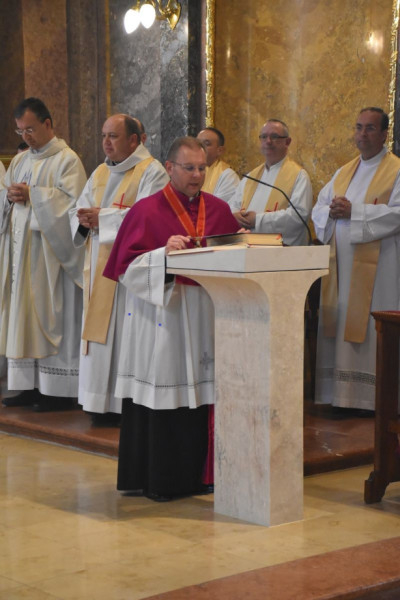 Kérjük a Boldogságos Szűz Mária oltalmát és pártfogását, hogy tudatosan éljük meg keresztény hitünket, és vonzó módon istengyermeki voltunkat. Ehhez kérjük e bazilika kincseinek, a Vérrel Könnyező Szűzanyának, Szent László királynak és Boldog Apor Vilmos püspöknek közbenjárását – buzdította a híveket szentbeszéde végén a kerületi esperes.