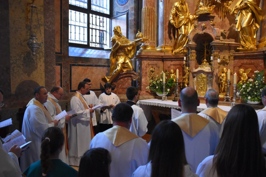 „Köszönöm, hogy eljöttek, együtt ünneplünk és imádkozunk” – ezekkel a szavakkal köszöntötte a Győr Környéki Esperesi Kerület papjait és híveit, minden jelenlévőt Böcskei Győző, a székesegyház plébánosa.