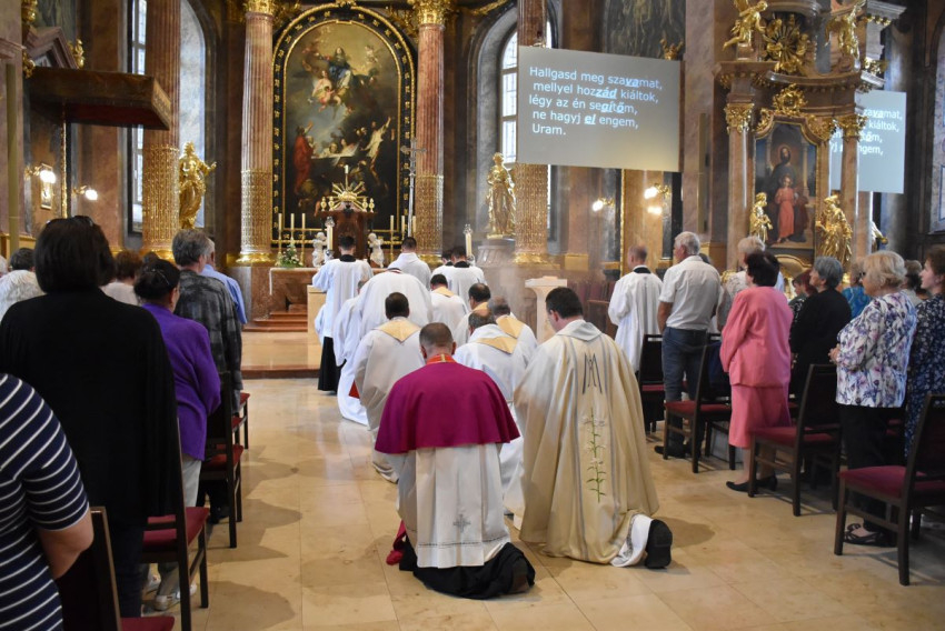A mai alkalom különös nap számunkra, amikor a délelőtti órákban két diakónust és három áldozópapot szentelt Veres András megyéspüspök a Győri Egyházmegye szolgálatára – mondta a plébános. – A hivatás mindig ajándék és titok, ahogy ezt Szent II. János Pál pápa megfogalmazta. „Ennek a titoknak lettek befogadói és hordozói a mai napon szentelt testvéreink. De mi is – papok és hívők – egyaránt hordozzuk magunkban saját életünk hivatását.” Hálát adni jöttünk ezért a kőből épült templomért, amely Isten lakóhelye és az imádság otthona. Itt mindannyiunk lelke megnyugodhat.