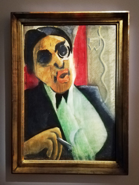 A Magyar Nemzeti Galéria kiállításán jó néhány portréja is szerepel, például Szomory Dezső arcképe 1921-ből. Brutálisan, szinte nyers erővel ábrázolja az írót: vastag szája, bal szemén a monoklija, középen elválasztott haja markánsan jelenik meg az alapozott rétegelt falemezen; igazi expresszív alkotás. Az 1920-ban készült Modellek – vagy más néven Asszonyok – című festménye csupa ridegség, magány és fenyegetettség. Depresszió és mély kiábrándultság érezhető a képen. A két nő között nincs kapcsolat, csak távolság; a sötét és világos tónusú mű drámai erővel hat a nézőre. Mindez nyilvánvalóan összefügg az I. világháború utáni időszak lélektani állapotával. Pedig a húszas évekre már valamiféle kibontakozás kezdődött szerte Európában. Ám nem mindenkinél. Korábbi írásaink egyikében már említettük, hogy Otto Dix, a frontot megjárt német katona, aki szintén festő volt, a háború után már sohasem tudott szabadulni a lövészárkok zajától, a halálgyárnak ettől a poklától.