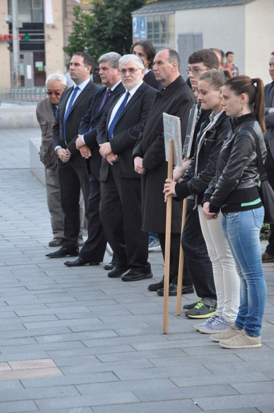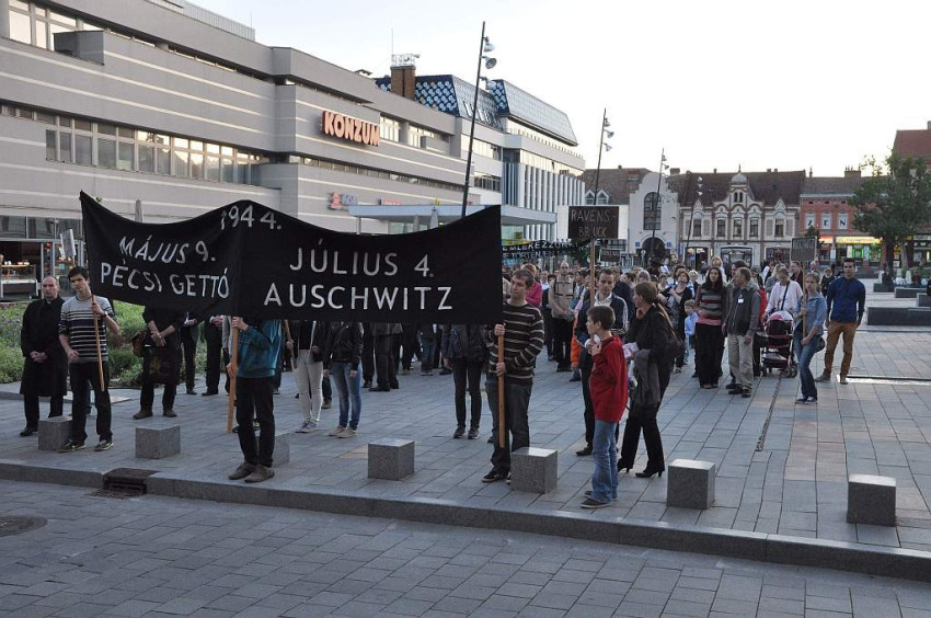 Mintegy 300 résztvevő méltóságteljesen vonult a Kossuth téri zsinagógához, ahol meghallgatták Csizi Péter alpolgármester és országgyűlési képviselő, Udvardy György pécsi megyéspüspök, Schönberger András főrabbi, valamint Nagy János, a Sant'Egidio Közösség felelősének beszédét.
