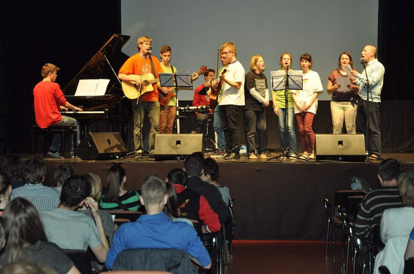 Fahidi Éva képekkel illusztrált tanúságtétele előtt és után a pécsi, gimnazistákból álló Katifi együttese játszott. Az együttes tagjai közül többen részt vettek a Sant'Egidio 2012-es Krakkó-auschwitzi zarándokútján, ahol már korábban is zenéltek. E zarándoklat „himnusza” volt az A World Without Violence, amely kifejezi a fiatalok vágyát, hogy erőszak, kirekesztés és megbélyegzés nélküli világban akarnak élni. (A Sant'Egidio Közösség 2014 szeptember 17. és 21. között ismét megrendezi a zarándoklatot, ahová várják a részt venni kívánó 17 és 26 év közötti fiatalok jelentkezését.)