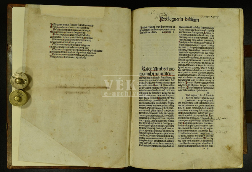 A németországi Speyerben, Peter Drach nyomdájában két teljes bibliakiadás látott napvilágot 1486-ban és 1489-ben. A veszprémi példány a második kiadásból származik (jelzete: VÉK 37013), amelyből hazánkban mindössze négy példányt őriznek.