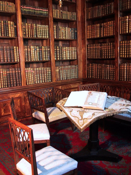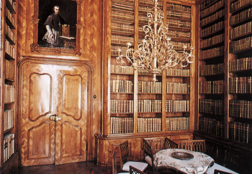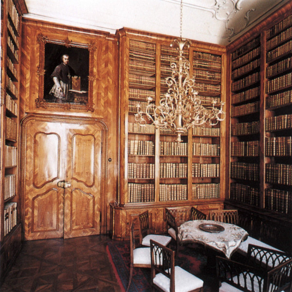 Az olvasószoba enteriőrje: a 18. századi beépített polcrendszer, az ahhoz kapcsolódó intarziás faburkolat és a tudatosan, méret szerint csoportosított gyűjtemény a püspök gondoskodásáról, a barokk pompa szeretetéről és különleges esztétikai érzékről tanúskodnak.