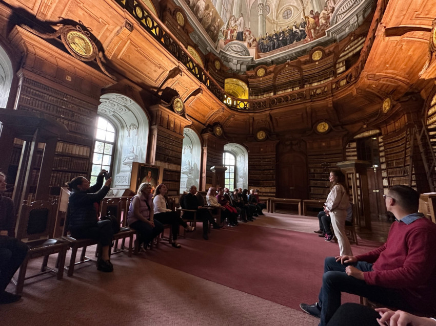 Másnap reggel 7 órakor ünnepeltük a szentmisét az üdülő kápolnájában, majd reggeli után útnak indultunk Egerbe, ahol délelőtt az Eszterházy Károly Katolikus Egyetem kincseiből megtekinthettük a rendkívül értékes könyvtárat, valamint a dísztermet, majd az Érseki Palotát látogattuk meg a főegyházmegye munkatársainak vezetésével.