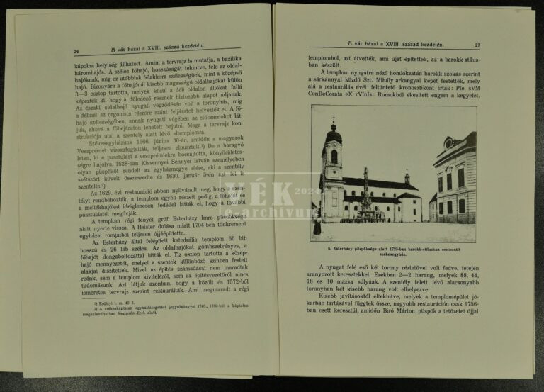 Az alábbi – a kötet készítési időszakában elérhető információk alapján összeállított – kronológiai felsorolás szemlélteti a vonatkozó fejezeteket: az Eszterházy-féle székesegyház (1704), az első ferences rendház és templom (1730), az Acsády Ignác által építtetett püspöki lak (1733), a Biró-Giczey ház (1733, illetve az emelet 1772), a nagypréposti ház (1741), a Szentháromság-szobor (1750), a Dubniczay-ház (1751), a Tejfalusy-ház (1772), a Dravecz-ház (1775), az újabb ferences templom és kolostor (1776), a Koller Ignác által építtetett püspöki palota (1778), a piarista gimnázium (1778), az agg papok háza (1778), a nagyszeminárium (1781), a Havranek-ház (1793) és a Simoga-ház (1798).