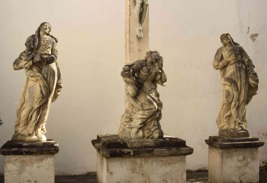 Később a szobrok bekerültek a főegyházmegyei gyűjteménybe, azonban ott is kültéri elhelyezésbe. Látható rajtuk a korábbi restaurátori javítás (a kiegészítések jól megkülönböztethetők a nyers vésőnyomokkal alakított felület alapján); az időjárás által megviselt állapotuk ismét gondozásra szorul. A barokk szobrok koruk jellegzetes, jó kvalitású alkotásai, a mozgalmas drapéria, lendületes mozdulatok a felfokozott érzelmek hű kifejezői. A Krisztus halála felett érzett fájdalmat Mária mellkasra helyezett keze, Magdolna sirató gesztusa erősítik. A halálra és az afelett aratott győzelemre utal a Magolna jobbjában tartott koponya; további attribútumok nem járulnak az alakokhoz.