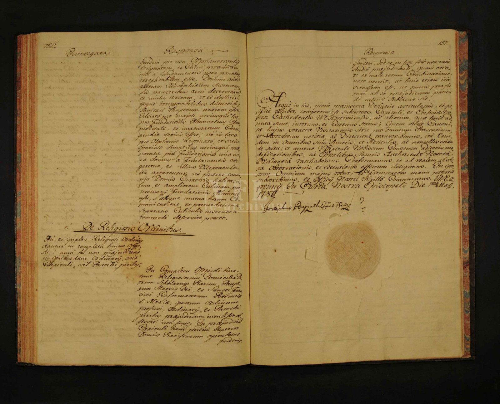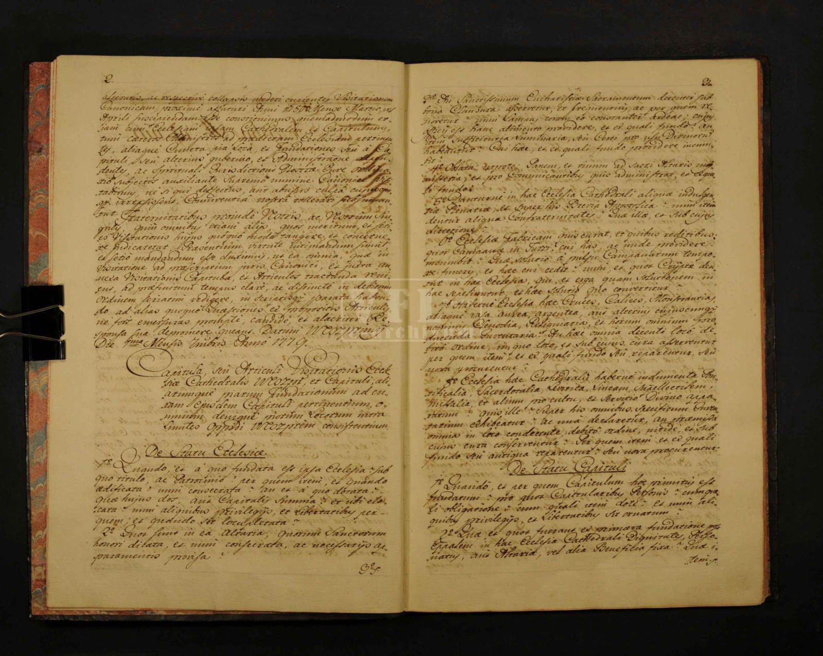 A székesegyház és a plébánia fenntartása a kegyúr, esetünkben a mindenkori püspök és a székeskáptalan feladata volt. A fennmaradt négy 18. századi veszprémi egyházlátogatás szövege közül csak az utolsóban, az 1780-ban véglegesítettben térnek ki a plébánia helyzetére. Az újkori Veszprémben a városi plébánia vezetője először 1752-ben lett egyházmegyés pap, majd 1807-től állandósult az a gyakorlat, hogy a káptalan egyik tagja, azaz az egyik kanonok lett egyszersmind a plébánia vezetője mint „kanonok-plébános”. Az 1780. évi veszprémi egyházlátogatás kitér a székesegyházra, a káptalanra, a plébániai lelkipásztori szolgálatra, a város további templomaira, a szemináriumra, a karitatív és szociális intézményekre (kórházra és árvaházra) és a településen működő szerzetesrendekre: a piaristákra és ferencesekre.