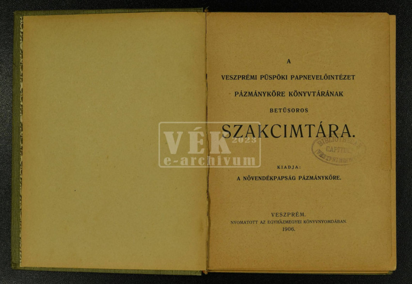 A Pázmány Kör könyvtári állományát a fennmaradt katalógusokból ismerhetjük meg. 1906-ban nyomtatásban jelent meg A veszprémi püspöki papnevelőintézet Pázmányköre könyvtárának szakcímtára. Az 1906 után beszerzett művekről kéziratos katalógus áll rendelkezésünkre: A Pázmánykör könyvtárának csoportjegyzéke az 1906 óta beszerzett könyvekről, amelyben az utolsó bejegyzés az 1940/41-es évből való.