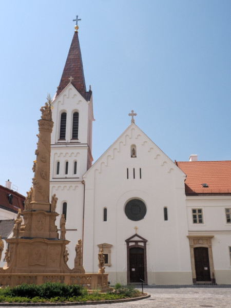 „A keresztény államiság kialakulását idézik fel a barokk korban épült, államalapítónknak szentelt ferences templom mennyezetképei. A karzaton Szent Imre herceg fogadalomtétele tűnik fel, a hajó feletti részben pedig az a jelenet látható, amikor Szent István fogadja a pápa követeit, és megkapja a koronát. A pápa másik ajándéka Istvánnak az apostoli kettős kereszt, amellyel a királyt apostolnak ismeri el a magyar nép megtérítése miatt. A mennyezetre festett történet további részleteit a várnegyedbéli túrákon ismerhetik meg az érdeklődők” – tette hozzá Nagy Veronika.