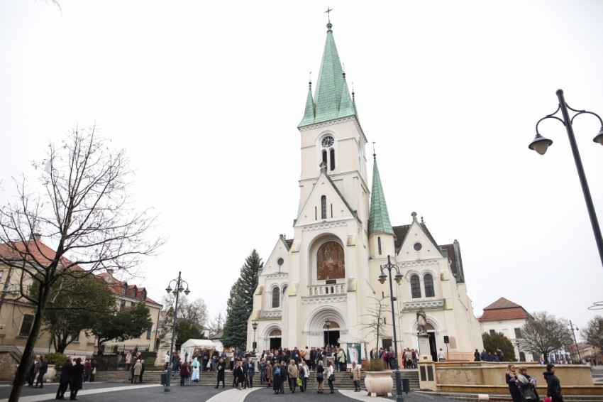 Kaposvár főtere családiasan otthonos, és éppen múlt szeptemberben választották Európa legszebb főterének. Jó ide megérkezni, mert kicsit meseszerű, mesefilmbe illő a szombat reggel félig-meddig még csak ébredező város. Akárcsak a Kapos szálloda kávézójában kapott gyűszűnyi presszókávé, amely kollégám szerint valóságos esszencia: finom is, rekorderős is, igazi tudósítónak való. A templomból dicsőítő énekek hallatszanak ki, az előtte gyülekezők és az odabent helyet foglalók egyaránt derűsen várakoznak. Ünnepélyes hangulatban vagyunk, és mégis olyan itt lennünk, mintha hazaérkeztünk volna.
