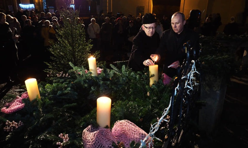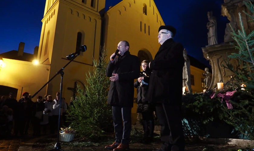 Az érsek ünnepi beszédét követően Porga Gyulával együtt gyújtotta meg a negyedik gyertyát, majd a jelenlévőkkel közösen díszítették fel a koszorú mellett álló két csupasz fenyőfa ágait. Ezt követően a főpásztor a nemrégiben megújult érseki palota erkélye alatt felállított városi betlehemben elhelyezte a kisded Jézus szobrát.