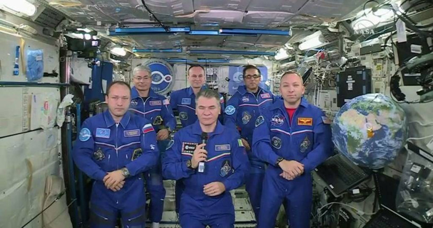 „Jó napot vagy jó estét kívánok! Amikor a világűrben van az ember, ezt sosem lehet tudni...” – köszöntötte az asztronautákat Ferenc pápa, aki a vatikáni VI. Pál aula kistermében ült, mikor műholdas kapcsolatba lépett a Nemzetközi Űrállomás legénységével.