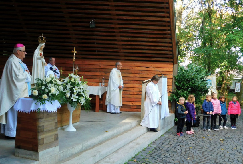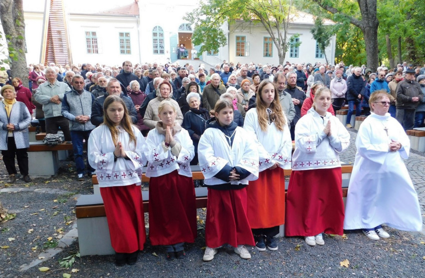 Igazi őszies napsütés fogadta a szép számú hívősereget. A bevonulást követően Helter István plébános, a helyi Fatimai Boldogasszony Általános Iskola és Óvoda püspöki biztosa üdvözölte a megjelenteket, majd a köszöntők következtek. Ez a nap az oktatási intézmény számára is ünnep.