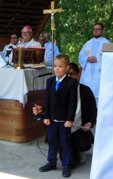Spányi Antal megyéspüspököt az óvodások verssel és énekkel, az elsőáldozók képviselői pedig virágcsokorral, ajándékkal és köszönőszavakkal tisztelték meg. Varga Zoltán 2. osztályos tanuló Aranyosi Ervin Amikor megöregednek… című versét szavalta el a nagyszülők tiszteletére, a meghatottság könnyeit csalva több jelenlevő szemébe.