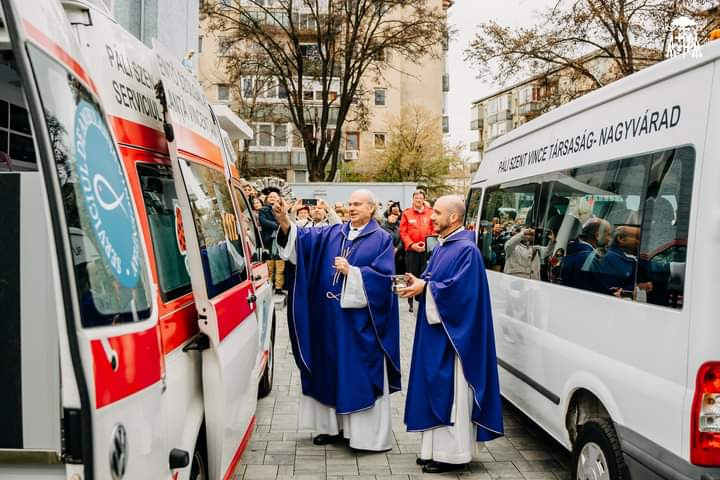 A szentmise végén a plébánia udvarán megáldották Szent Vince szobrát, valamint egy mentőautót és egy kisbuszt.