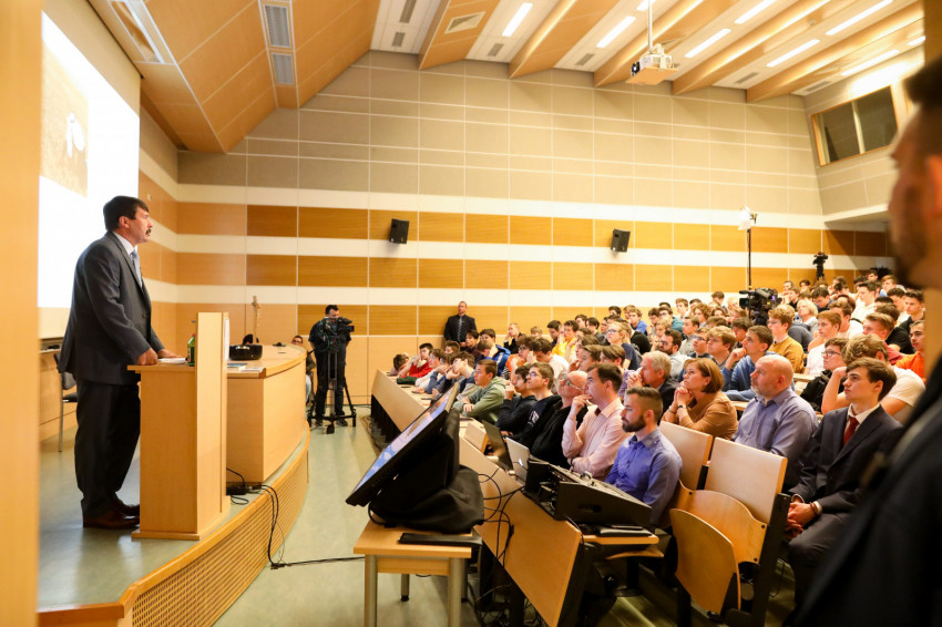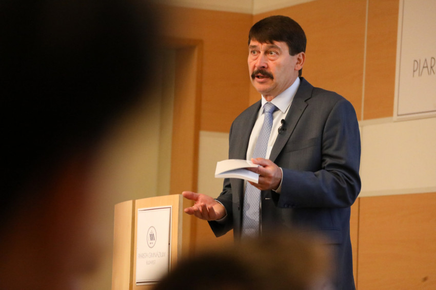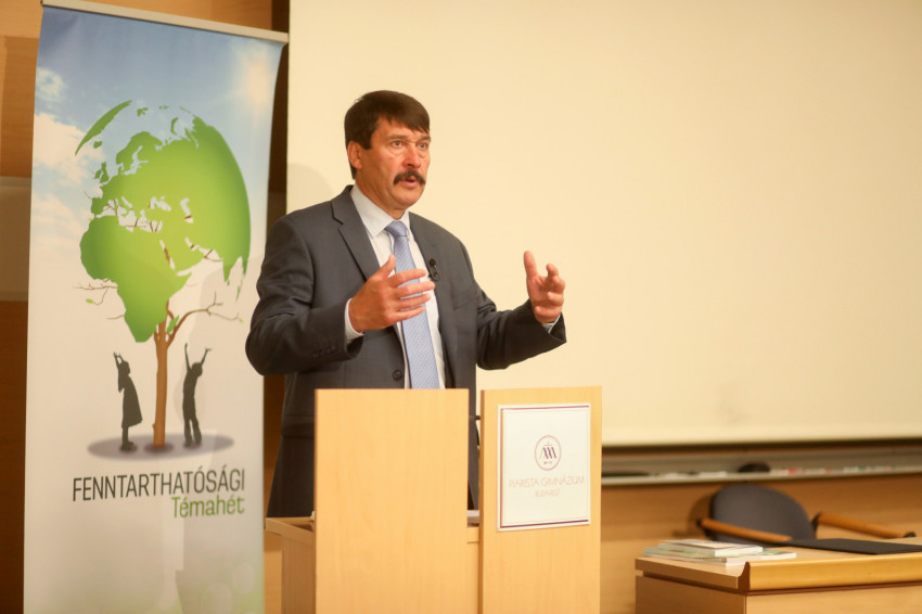 A köztársasági elnök előadása végén arról beszélt a pályaválasztás előtt álló fiataloknak, hogy egy-egy szakma művelője – az orvos, az informatikus, a közgazdász, a tanár, a jogász – mit tehet a fenntarthatóságért a maga területén.