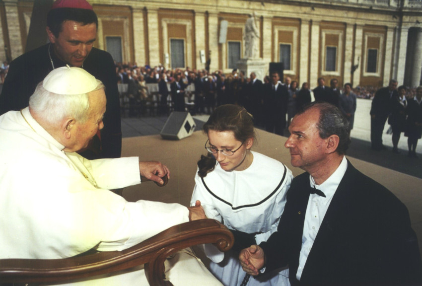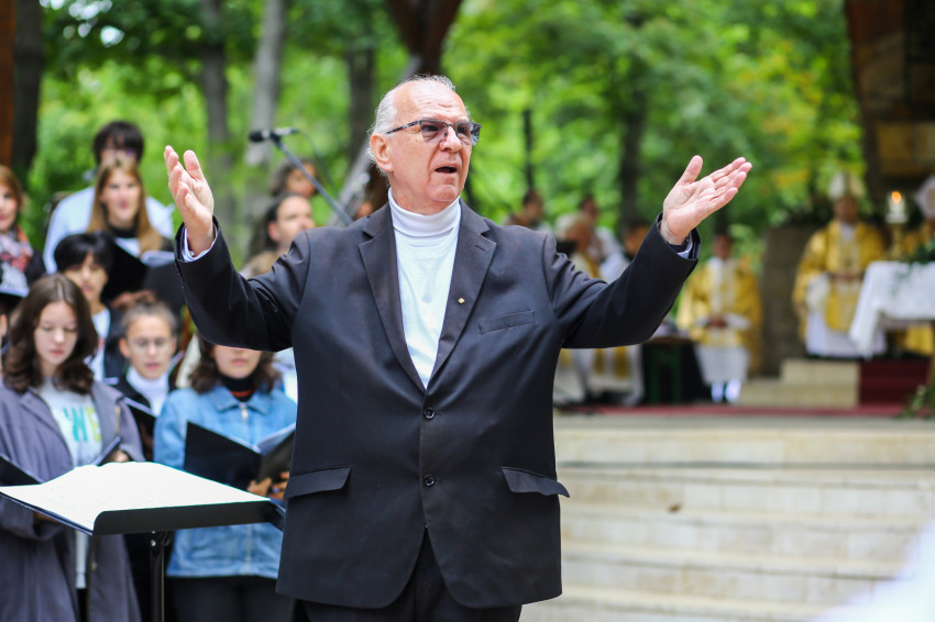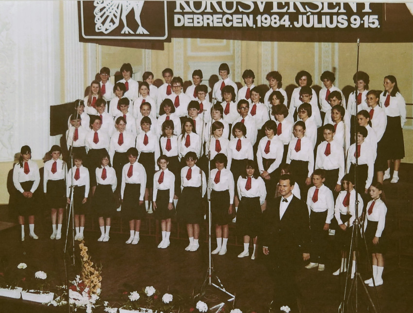 – Meggyőződésből. Tudtam, hogy ez így jó lesz, és hogy meg kell csinálni. De valójában a Jóisten műve volt, aki mindvégig vezetett és a tenyerén hordozott. Még a rendszerváltás előtt voltunk, hivatalosan nem mondhattuk ki a keresztény szót, csak virágnyelven. Úgy fogalmaztunk, a létrehozandó intézmény egy „iskola, a katedrálisok mellett működő kórusiskolák mintájára”. Ebből, aki akarta, érthette – főleg, ha ismert engem például a Jézus Szíve-templomból, ahol karnagy voltam –, hogy milyen szellemiségű iskoláról van szó. Azért is jöttek olyan sokan a jelentkezők, mert akkoriban nagy szomjúság volt erre. Az iskolát Jézus Szíve és Mária Szeplőtelen Szíve tiszteletére ajánlottuk, és Szűz Mária oltalmába helyeztük. Számomra a kereszténység nem ideológiát vagy világnézetet jelent.