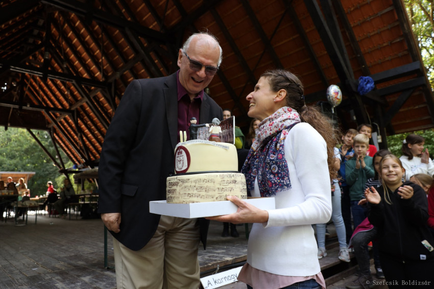 – Az együttlét mindig nagy örömet jelent. Amikor évente egyszer összegyűlik az egész család, bizony csaknem hatvanan vagyunk. Azért be kell vallanom, nálunk feleségemé, Mártáé az érdem. Ő a család szíve, a nevelés motorja, most is az unokáknak él. Én csak rövidebb időket tudtam úgy igazán a gyerekekkel tölteni, de szerencsére mindhárman a kórusiskolába jártak, s most már többen az unokák közül is.
