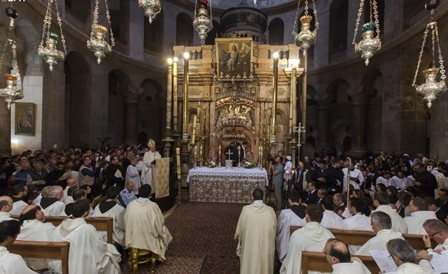 Húsvéti szertartás a jeruzsálemi Szent Sír-kápolnában