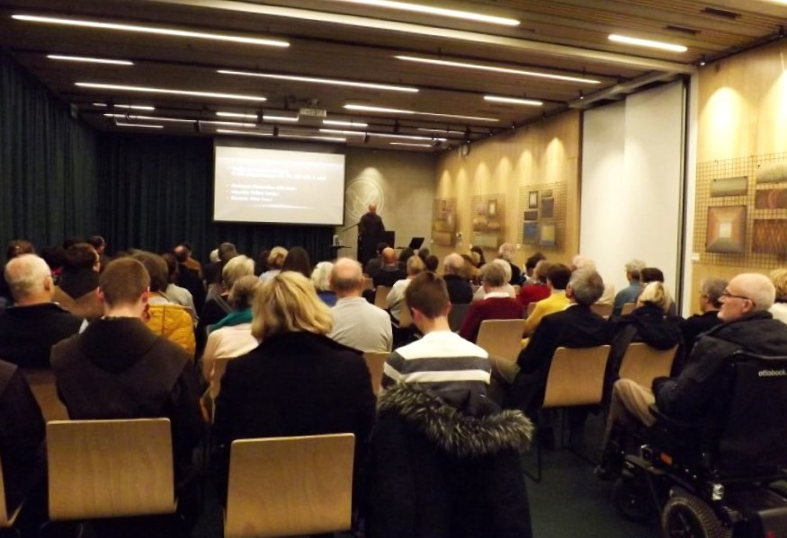 – és itt érkezünk el az előadás címében foglalt témához. „Mit értünk szent és profán alatt?” – tette fel a kérdést Gábriel testvér. A „szent” szónak a latinban két változata létezik: a „sanctus” Isten jelzője, tehát megragadhatatlan, ez a „nagybetűs Szent”; míg a „sacer”, a kisbetűs párja olyasvalami, ami a nagybetűshöz tartozik, számára lefoglalt. A „profán” eredetileg nem hordozott pejoratív felhangot, egyszerűen azt takarta, ami nem a nagybetűs szenthez tartozott: ami e világi volt. A paradicsomban a profán a szentre irányult – ide vágyakozunk vissza azóta is. Isten terve az elbukott profán reszakralizációja, „visszaszentesítése” – fogalmazott Gábriel testvér. – Ez Jézus második eljövetelével fog beteljesedni, és adventben különösen is hangsúlyos téma.