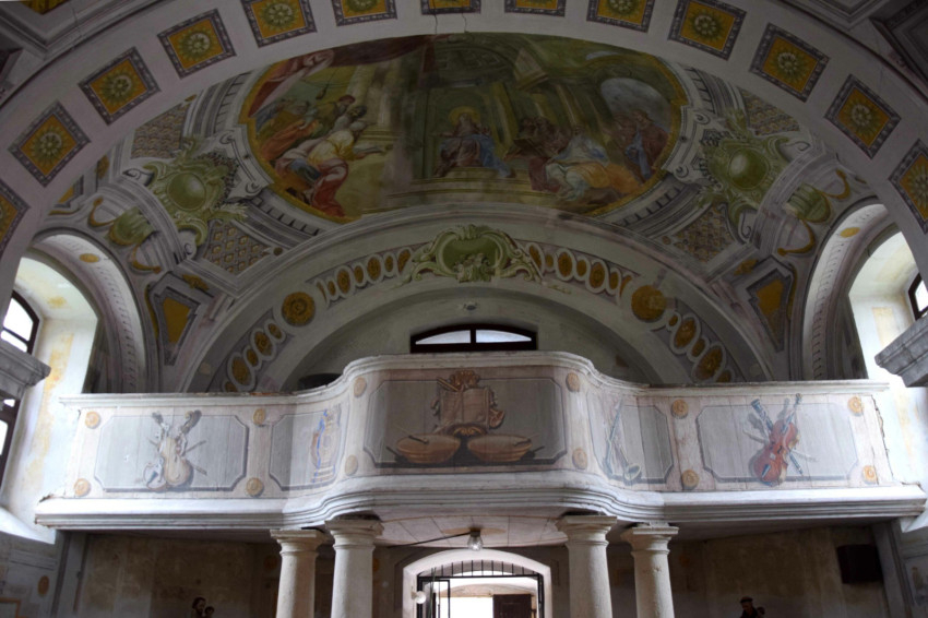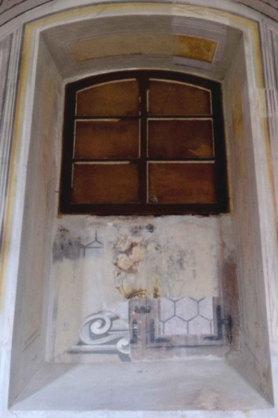 A sekrestyeajtó feletti vakablak kétrétegű kifestéssel