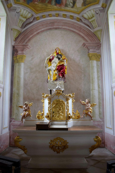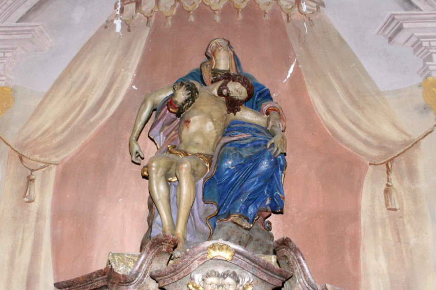 Szentély a barokk oltárral és Pietà-szoborral restaurálás után