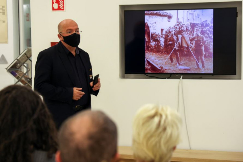 Már a korábbi sétán is szó esett Aba-Novák Vilmosról a Dömötör-torony freskói kapcsán. Most Lázár György értő idegenvezetésével tudhattak meg többet a résztvevők a festőről, akinek újszerű stílusa miatt egykor rajongói és bírálói is egyaránt akadtak. Kezdetként a művész életrajzába kaptak vetített betekintést a jelenlévők. Kiderült: Aba-Novák Vilmos maga is harcolt az első világháborúban – megsebesült, jobb karja egy ideig béna volt –, személyes tapasztalatokat szerezve annak borzalmairól.