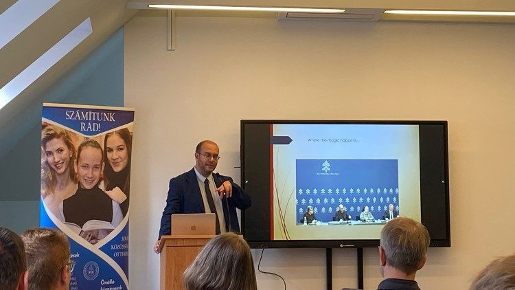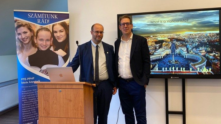 Andrea Gagliarducci, a Catholic News Agency és az ACI Stampa munkatársa rendszeresen a pápa kíséretében utazó újságírók között van, ezért számos kulisszatitkot osztott meg az érdeklődő hallgatókkal. A kurzusról és a főiskola nemzetközi kapcsolatairól kérdezte Gedő Ágnes a Pécsi Püspöki Hittudományi Főiskola rektorát, Kovács Gusztávot.