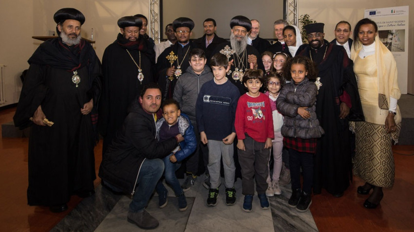 Abuna Matthias találkozott a közösség nyelviskolájának diákjaival és néhány szíriai menekülttel, akik a humanitárius folyosón keresztül érkeztek Olaszországba.
