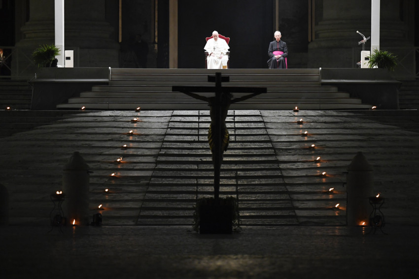 Úr Jézus, a rengeteg rossztól eltorzult tested most gyolcsba van tekerve és a meztelen szikla ölére fektetve: íme, az új teremtés. Atyádra bízzuk Egyházadat, amely megnyitott oldaladból született, hogy soha ne tegye le a fegyvert a sikertelenség és a látszat előtt, hanem mindig lépjen ki, hogy elvigye mindenkinek az üdvösség örömhírét.