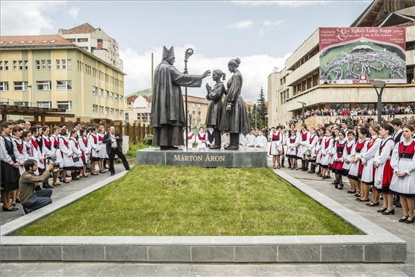 A szoborállítást kezdeményező Márton Áron római katolikus férfiszövetség tagjaként felszólaló Ráduly Róbert, Csíkszereda korábbi polgármestere arra is kitért beszédében, hogy miért van jó helyen a püspök szobra a város főterén. Mint mondta, a szobor helyén korábban kápolna, majd a kommunista politikai rendőrség székháza állt. A reményvesztettség cáfolatának tekintette, hogy „Márton Áronnak a csíkiak a milicia és a securitate (a kommunista erőszakszervek) hűlt helyén állítanak szobrot”.