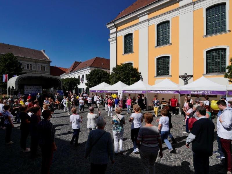 Az Alzheimer-világnap színpadi programjait a Városház téren tartották. Cser-Palkovics András polgármester köszönetét fejezte ki, hogy összefogással létrejöhetett a figyelemfelhívó rendezvény a legelesettebbekért. „Az emberségről, a lélekről, a szellemről és a tudásról is szól a mai nap” – fogalmazott a polgármester.
