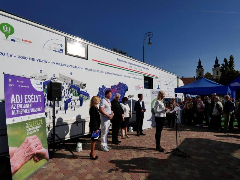 A téren a demencia megelőzésével és kezelésével kapcsolatosan interaktív, tematikus sátrakat állítottak fel, ahol az intézmények, szervezetek bemutatkozásán túl táplálkozási tanácsadás, agytorna, mozgásos program és zeneterápia várta az érdeklődőket.