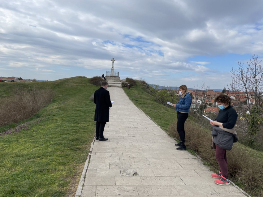 Befejezésül kis csoportokban a vár melletti Benedek-hegyre vezető úton immár a szabadban imádkozták el a keresztutat az érsekségi dolgozók.