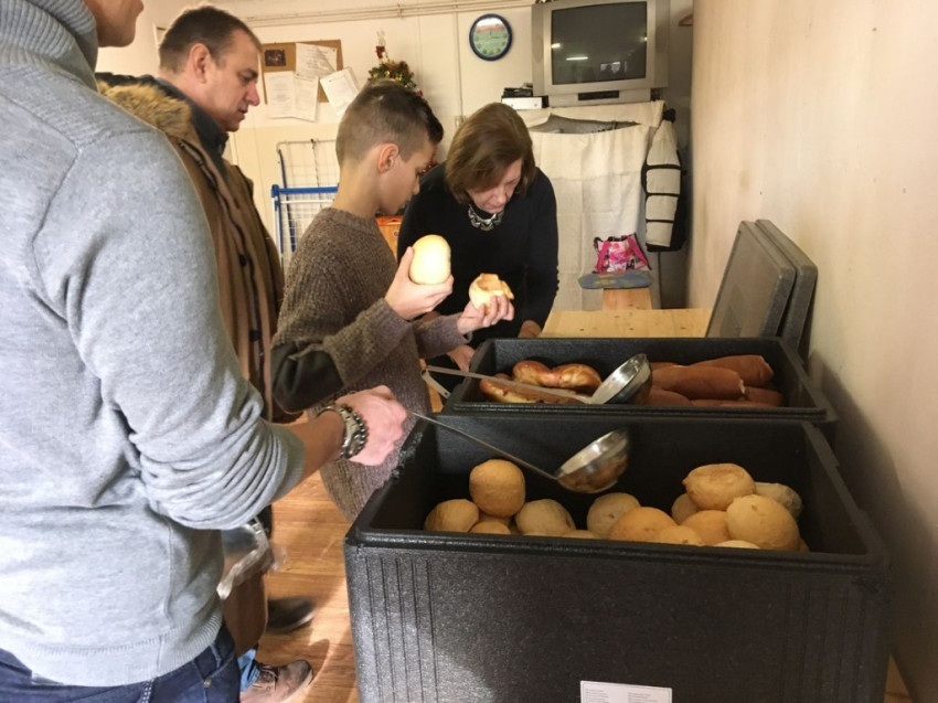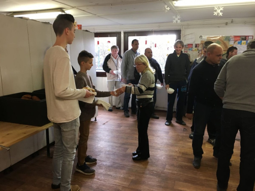 Az ebéd elején Magyar Pál kesztölci plébános mondott áldást. Felidézte a Szent Család útját Betlehembe és Jézus születésének körülményeit. Pál atya arra irányította a figyelmet, hogy az Úr angyala a pásztoroknak, az akkori idő legszegényebb embereinek – akik gyakran hajléktalanként éltek – vitte el először az örömhírt, hogy megszületett a Megváltó.