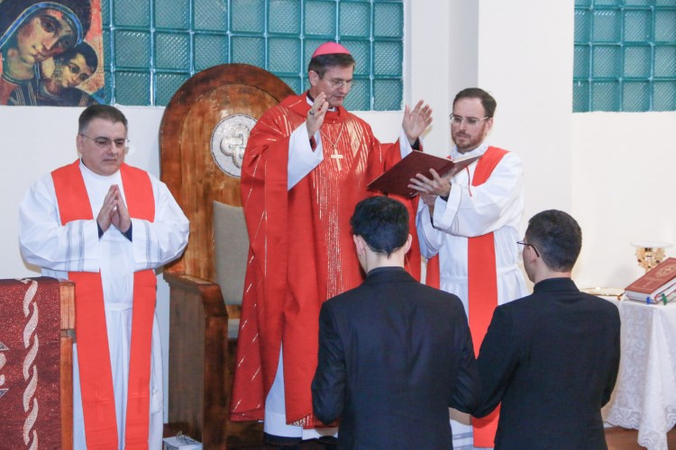 Lucas Pereira Nunes da Paixao és Ivan Bušic a homíliát követően lépett a főpásztor elé, és a nyilvánosság előtt megerősítették elhatározásukat, hogy az egyházi rend felvételével Isten szolgálata mellett kötelezik el magukat.